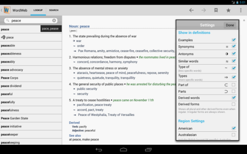 The database has more than 160,000 root words and 222,000 senses many proper nouns, pronunciations, and usage tags. WordWeb works offline, but when online you can also quickly view Web references such as the Wikipedia encyclopedia.